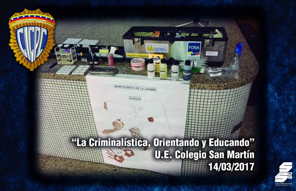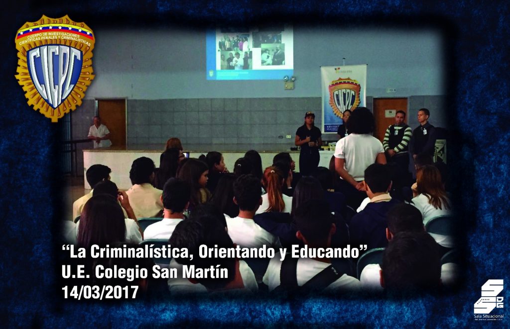 La charla “La Criminalística, Orientando y Educando” fue dictada a 113 alumnos de 4to y 5to año de Ciencias de la Unidad Educativa Colegio San Martín, ubicada en la avenida principal de San Martín, municipio Libertador del Distrito Capital.