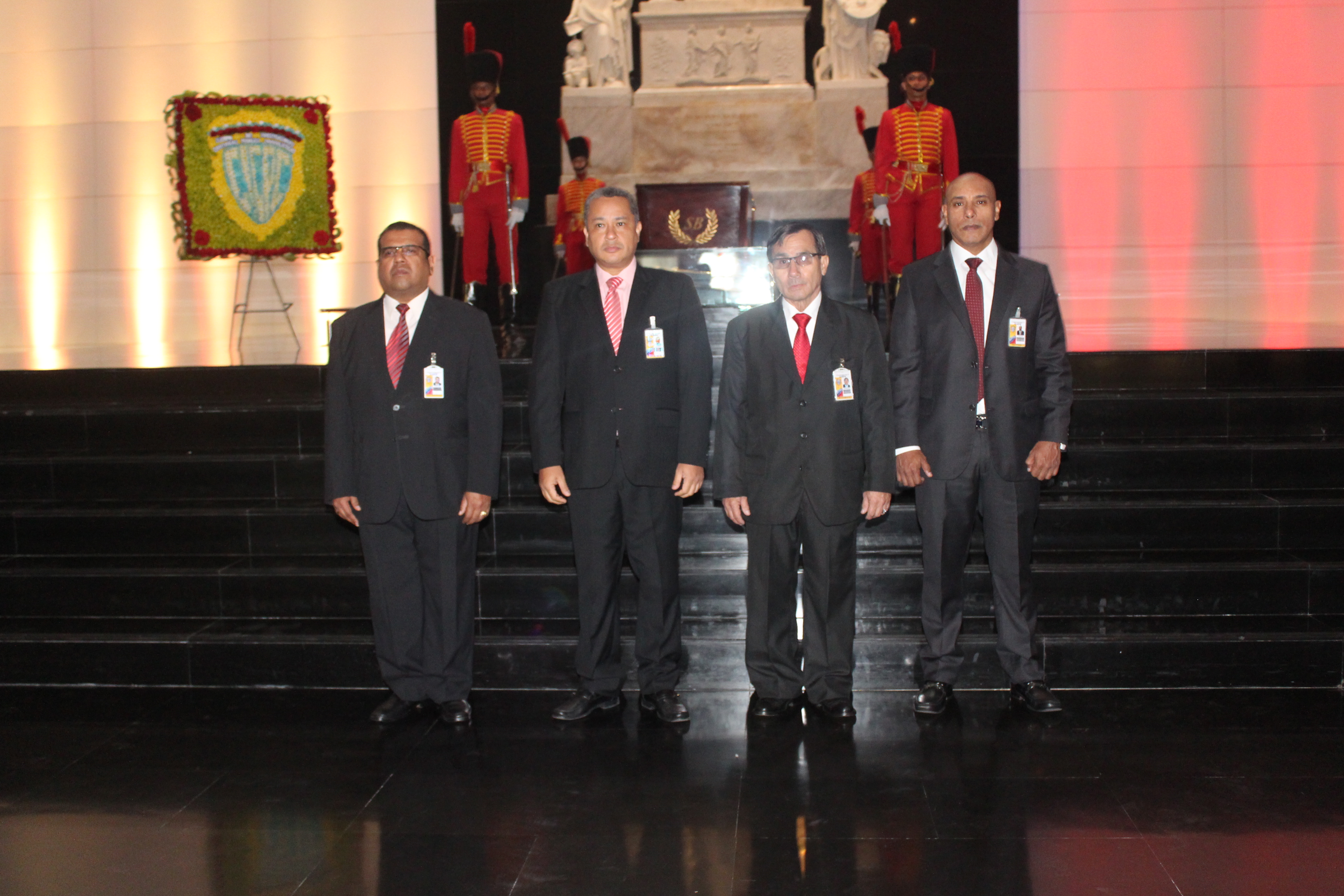Estos subieron al sitial de honor, se colocaron al lado de la ofrenda floral y sonaron las notas del Himno del Cicpc y del Himno Nacional de la República Bolivariana de Venezuela. Al finalizar los himnos se colocaron frente al mausoleo e hicieron una reverencia.